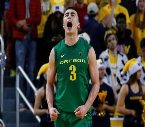 到了大二赛季,他开始全面爆发,被提上了首发的他,数据直接暴增至14.5分、4.8次助攻,三分球命中率更是惊人的41.3%,赛季结束后也是入选了Pac-12的最佳阵容。尽管大三赛季,他的数据略有下滑,但已经成为了球队绝对的领袖,连续第三年帮助俄勒冈大学进入了NCAA的疯狂三月。