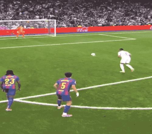 第42分钟,本场状态爆棚的维尼修斯下底传中,米利唐头球摆渡,贝林厄姆包抄破门,皇马再次领先。
