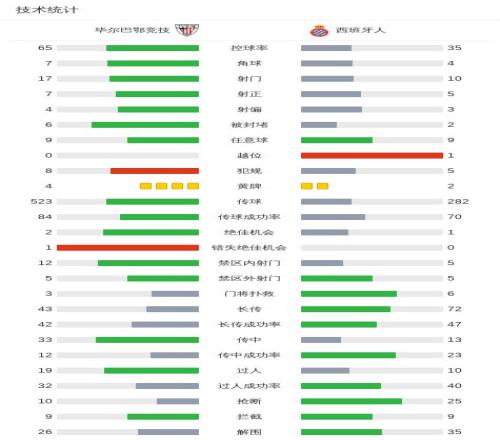 第38分钟,贝伦格尔门前捅射破门,毕尔巴鄂竞技1-0西班牙人