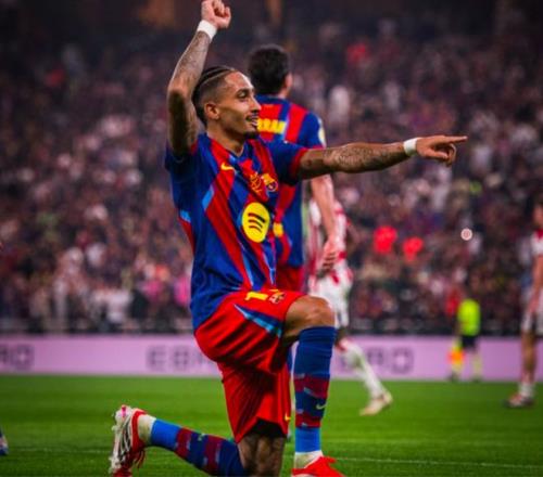 第30分钟,巴萨的配合行云流水,佩德里策动进攻,拉菲尼亚倒三角传中,费尔明无人盯防,直接将球打进死角。