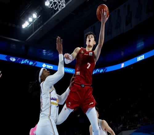 杨瀚森投进第二个三分后,现场一名中国球迷扯破喉咙大喊:杨瀚森,牛逼!