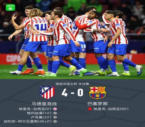 马竞40巴萨,埃里克乌龙+红牌,阿尔瓦雷斯、卢克曼传射建功 -